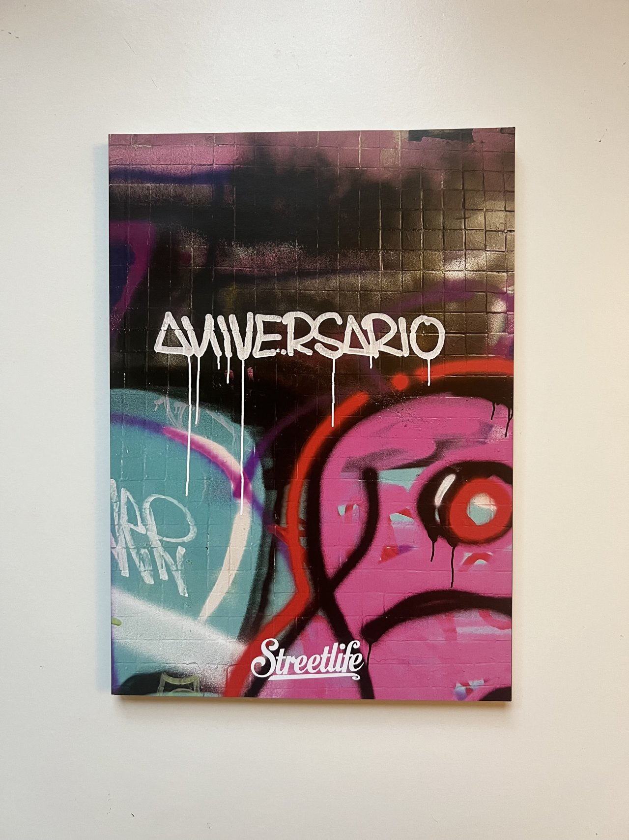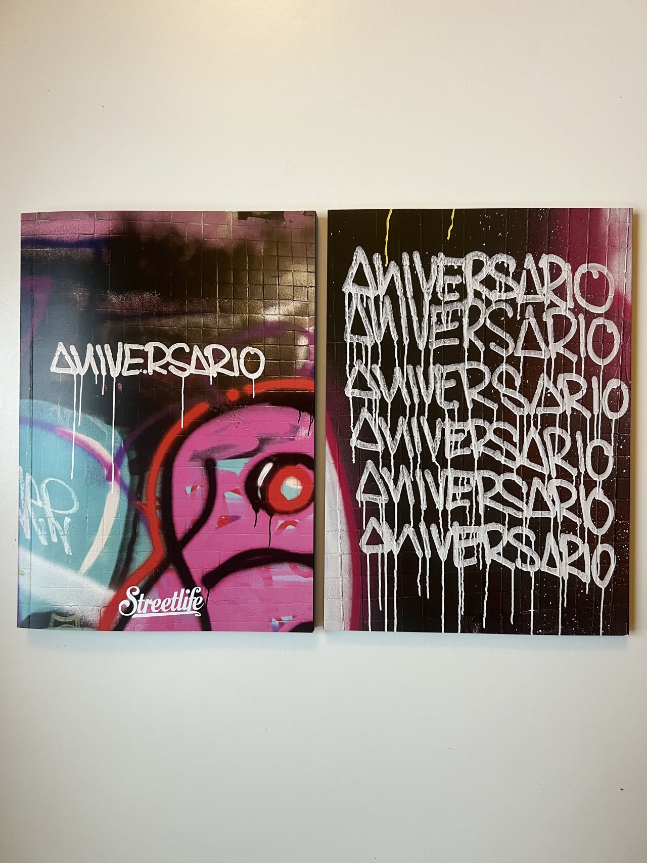 Aniversario photobook vznikla k 10.temu výročiu založenia Streetlife crew a zachytáva analógovými fotografiami obdobie natáčania projektu Aniversario. Všetky fotky su fotené na film a kniha je v rozmere A5 vytlačená na kvalitnom fotopapieri s matným odleskom. Počet strán 132!